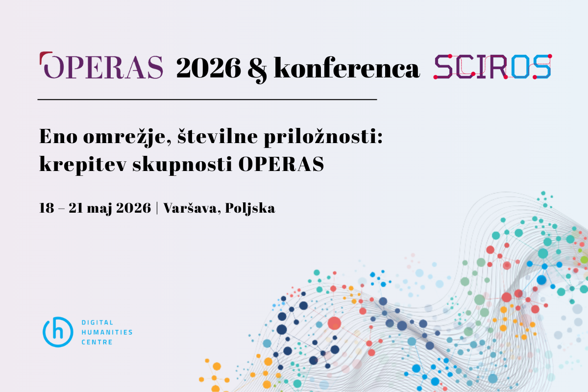 OPERAS 2026 in konferenca SCIROSMed 18. in 21. majem 2026 bo v Varšavi na Poljskem potekal skupni dogodek , ki jo organizirata raziskovalna infrastruktura in projekt . Dogodek bo združil skupnost odprte znanosti, zlasti s področja družboslovja in humanistike (SSH), ter ponudil prostor za razpravo o vlogi raziskovalnih infrastruktur kot povezovalnih vozlišč med raziskovalci, knjižnicami, založniki, oblikovalci politik in drugimi deležniki. Prva dva dneva bosta namenjena satelitskim dogodkom, osrednji konferenčni program pa bo potekal 20. in 21. maja 2026.Tema konference »Eno omrežje, številne priložnosti: krepitev skupnosti OPERAS« izhaja iz razumevanja raziskovalnih infrastruktur kot živih omrežij znanja, tehnologije in skupnosti, ki povezujejo lokalne, nacionalne, evropske in globalne ravni znanstvenega delovanja. Poseben poudarek bo namenjen vprašanjem odprte znanosti, vključujočemu upravljanju, raznolikosti disciplin, večjezičnosti ter razvoju kakovostnih in pravičnih praks znanstvenega komuniciranja.Organizatorji vabijo k oddaji prispevkov, ki se nanašajo na ključne izzive in priložnosti odprte znanosti, med drugim na razumevanja odprte znanosti med različnimi akterji, podporo specifičnim oblikam znanstvenega objavljanja v SSH, prilagojene pristope k vrednotenju in zagotavljanju kakovosti v skladu z načeli pobude CoARA, spodbujanje večjezičnosti in bibliodiverzitete ter vlogo znanstveno vodene uprave raziskovalnih infrastruktur.Prispevke je mogoče oddati v obliki posterjev, kratkih prispevkov ali panelov. Rok za oddajo prispevkov je 8. februar 2026. Obvestila o sprejetju prispevkov bodo poslana v začetku marca 2026, hkrati se bo odprla tudi registracija za konferenco. Udeležba na konferenci je brez kotizacije, udeleženci pa sami krijejo stroške poti in nastanitve.