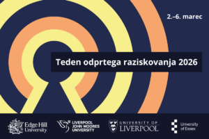 Teden odprtega raziskovanja 2026Med 2. in 6. marcem 2026 bo potekal spletni dogodek Teden odprtega raziskovanja 2026 (), ki ga skupaj organizirajo University of Liverpool, Liverpool John Moores University, Edge Hill University in University of Essex. Dogodek bo v celoti izveden na daljavo, povezava do posameznih vsebin pa bo udeležencem posredovana po elektronski pošti ob prijavi. Čeprav so nekateri vsebinski sklopi osredotočeni na britanski raziskovalni prostor, bo večina programa zanimiva tudi za mednarodno raziskovalno skupnost.Open Research Week je namenjen raziskovalcem in strokovnjakom, ki podpirajo raziskovalno delo, ter spodbuja razumevanje in uveljavljanje načel odprtega raziskovanja. Odprto raziskovanje zajema dobre raziskovalne prakse, ki temeljijo na odprtem dostopu do raziskovalnih rezultatov, podatkov, metodologij, protokolov in drugih elementov raziskovalnega procesa. Cilj je razširiti načela odprtosti na celoten raziskovalni cikel ter omogočiti večjo preglednost, dostopnost in ponovno uporabo raziskovalnih rezultatov.Dogodek izhaja iz dejavnosti skupnosti Open Research Community, ki spodbuja medsebojno podporo raziskovalcev iz različnih disciplin ter nudi storitve in podporo pri vključevanju načel odprtega raziskovanja v vsakodnevno raziskovalno prakso. Zgodnje in odprto deljenje raziskovalnih rezultatov omogoča širše vključevanje deležnikov tako znotraj akademskega okolja kot tudi zunaj njega.Podrobne informacije o programu, posameznih vsebinskih sklopih in prijavi so na voljo .Pretekle izvedbe dogodka Open Research Week 2025 – Open Research Week 2024 – Open Research Week 2023 – Open Research Week 2022 – Open Research Week 2021 –