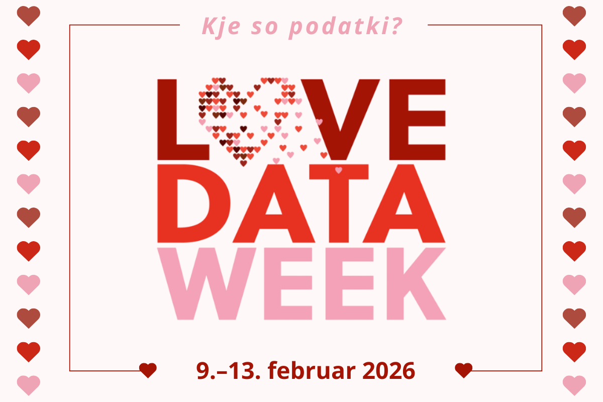 Love Data Week 2026: Kje so podatki?Med 9. in 13. februarjem 2026 bo potekal Love Data Week 2026, mednarodni teden, posvečen podatkom, ki ga koordinira . Pobuda vsako leto sovpada s tednom valentinovega in spodbuja razmislek o vlogi podatkov v raziskovanju, izobraževanju, javnem sektorju in širši družbi.Osrednja tema letošnjega Love Data Week je »Kje so podatki?«, s čimer organizatorji vabijo k razmišljanju o celotni poti podatkov – od njihovega nastanka in zbiranja do obdelave, shranjevanja ter dolgoročne hrambe. Tema odpira prostor za raznolike pristope in dejavnosti, kot so interaktivne delavnice, igre s podatkovno tematiko, krepitev podatkovne pismenosti ter razprave o etiki in odgovorni rabi podatkov.Love Data Week je namenjen širokemu krogu udeležencev, od začetnikov do izkušenih strokovnjakov. Cilj pobude je povezovati posameznike in organizacije z usposabljanji, dogodki in viri, ki jim omogočajo poglabljanje znanja na področjih, povezanih s podatki, in spodbujajo izmenjavo dobrih praks.Love Data Week je skupek raznolikih dogodkov in aktivnosti, ki jih vsako leto samostojno organizirajo univerze, nevladne organizacije, javne ustanove, podjetja in posamezniki po vsem svetu. Dogodki potekajo tako na spletu kot tudi v živo na lokalni ravni, udeleženci pa se na posamezne aktivnosti prijavljajo ločeno. ICPSR kot pobudnik in koordinator pobude vzdržuje osrednji seznam vseh dogodkov in aktivnosti, ki omogoča pregled nad raznolikim dogajanjem v okviru Love Data Week. Organizatorji vabijo vse zainteresirane, da se pridružijo praznovanju podatkov in prispevajo z lastnimi ustvarjalnimi dogodki ali sodelovanjem na obstoječih aktivnostih.Ideje za dogodke in dodatne informacije o pobudi so na voljo na .