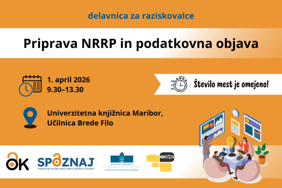 Univerzitetna knjižnica Maribor (UKM) in Arhiv družboslovnih podatkov (ADP) v sredo, 1. aprila 2026 med 9.30 in 13.30 organizirata delavnico Priprava načrta ravnanja z raziskovalnimi podatki (NRRP) in podatkovna objava, ki bo potekala v učilnici Brede Filo v UKM.