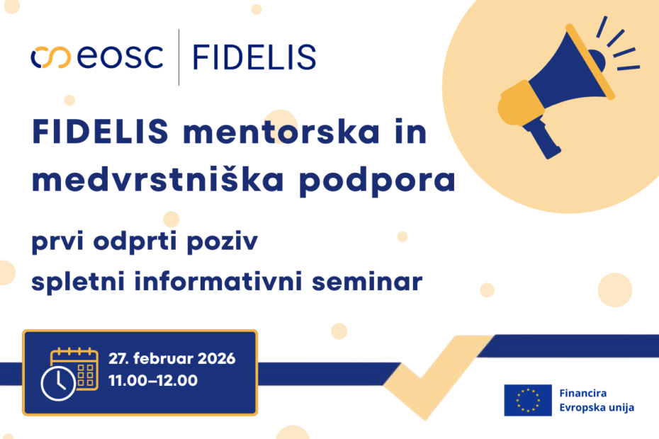 V petek, 27. februarja 2026, bo med 11.00 in 12.00 potekal spletni informativni seminar o prvem odprtem pozivu v okviru programa FIDELIS mentorska in medvrstniška podpora (mentoring and peer-to-peer support), namenjenega vključitvi mentorjev in udeležencev v tematske podporne programe, ki se bodo izvajali v drugi polovici leta 2026.