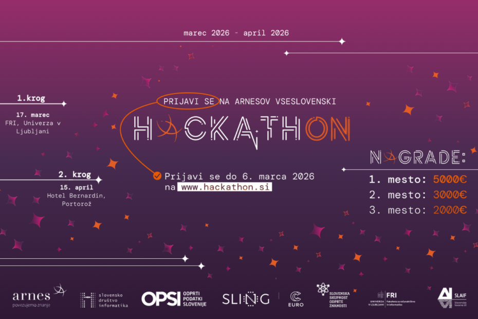 Arnes v sodelovanju s Slovenskim društvom INFORMATIKA, Slovensko tovarno umetne inteligence (SLAIF), Fakulteto za računalništvo in informatiko Univerze v Ljubljani, Ministrstvom za digitalno preobrazbo in Portalom OPSI organizira že tretji vseslovenski HackathON, letos s poudarkom na umetni inteligenci.