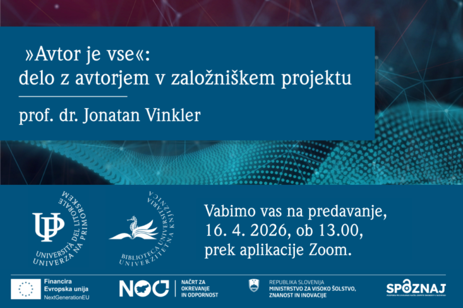 V četrtek, 16. aprila 2026, ob 13.00 vabljeni na spletno predavanje »Avtor je vse«: delo z avtorjem v založniškem projektu. Predaval bo… Read More »Predavanje »Avtor je vse«: delo z avtorjem v založniškem projektu